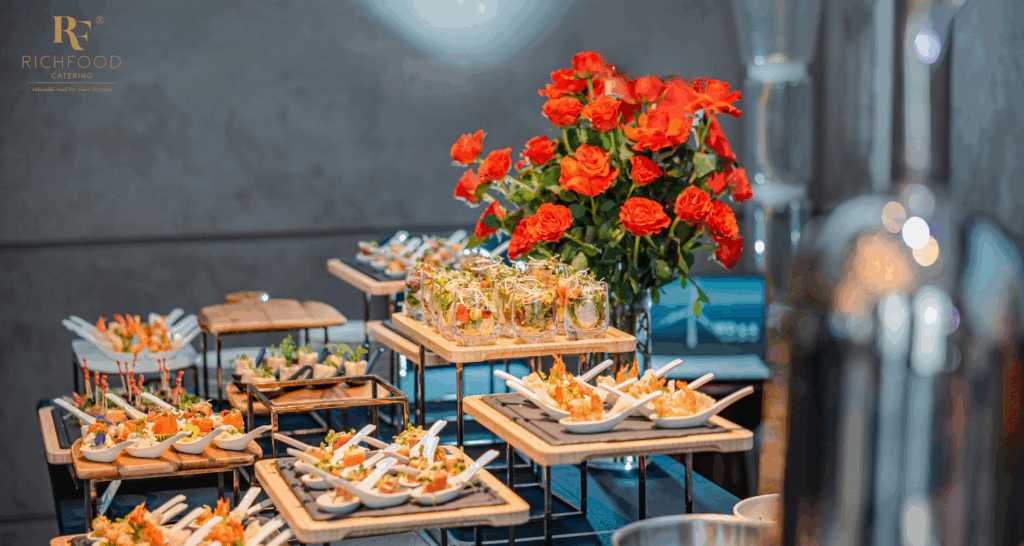 At RichFood, our experienced chefs craft fresh and innovative menus, offering a range of local, regional, and international dishes tailored to suit the diverse needs of corporate events.